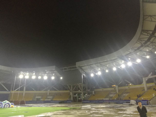 该场地的照明系统都是由广东七大洲提供的,主赛场平均照度达到500 LUX场地无明显黑色阴影出现,亮度高,照射均匀照度符合比赛要求;色温,显色指数,均匀度等各项指标和技术参数都有严格要求,最终灯光效果完全符合国内专业比赛级别。